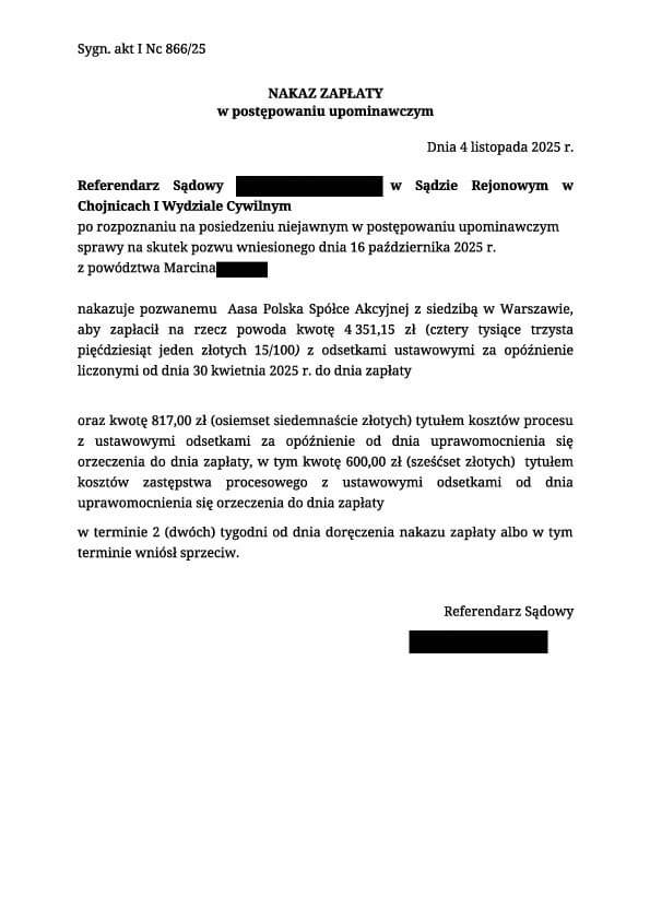 Wyroki i nakazy Naszych Klientów